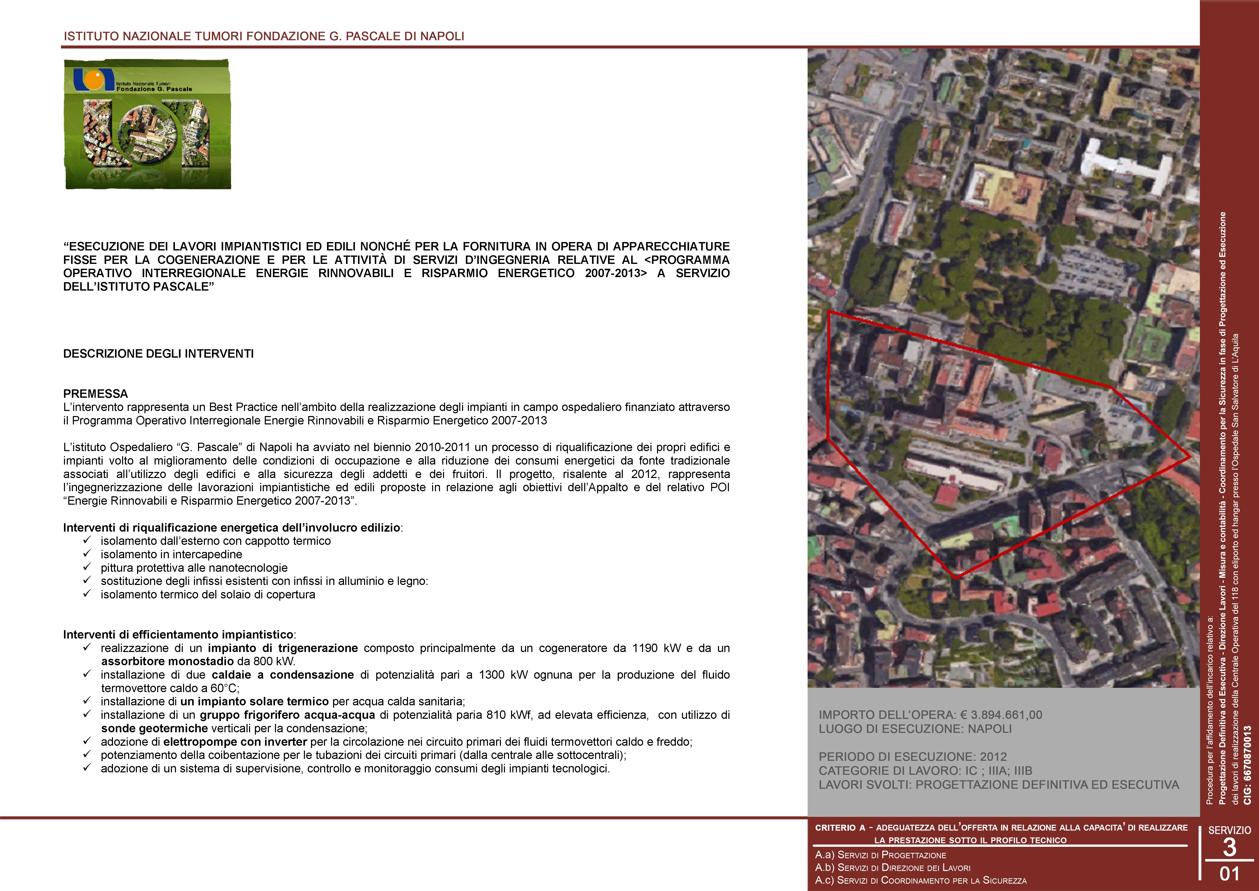 ESECUZIONE DEI LAVORI IMPIANTISTICI ED EDILI NONCHÉ PER LA FORNITURA IN OPERA DI APPARECCHIATURE FISSE PER LA COGENERAZIONE E PER LE ATTIVITÀ DI SERVIZI D’INGEGNERIA RELATIVE AL <PROGRAMMA OPERATIVO INTERREGIONALE ENERGIE RINNOVABILI E RISPARMIO ENERGETICO 2007-2013> A SERVIZIO DELL’ISTITUTO PASCALE